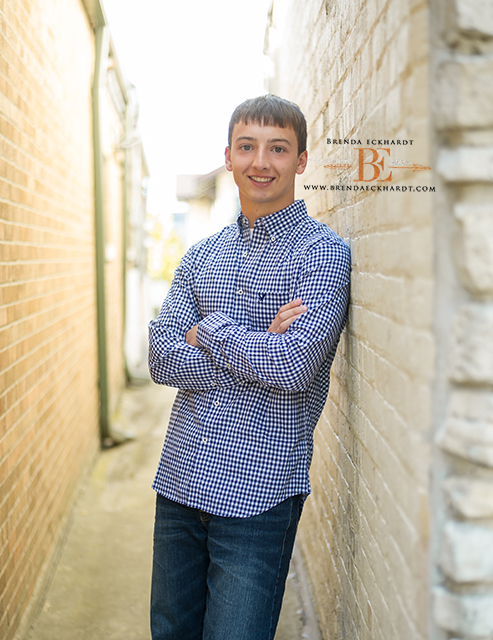 On the way back we stopped at my most favorite local location, that has not been discovered by other photographers, at least to my knowledge. The light is etherial and the brick makes for some great tough texture for a senior guy. He chose well as far as his clothing. I usually suggest shying away from plaids but this fit so well with the rest of the image. Thanks, Ben!